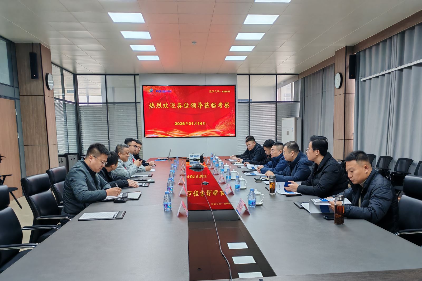 近日,惠通集团党总支书记、董事长王鸿飞,党总支副书记、总经理李冰卓携全过程事业部总经理等核心管理团队,赴新风光电子科技股份有限公司开展专项调研,重点考察济宁市400MWH分布式储能项目建设进展与技术应用情况。新风光电子相关负责人全程陪同,双方围绕项目落地、技术创新及行业发展趋势展开深度交流。